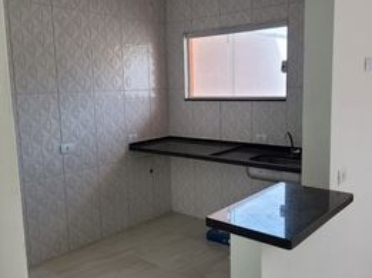 O imóvel dispõe de três dormitórios, sendo ua suíte, além de sala e cozinha integradas que garantem amplitude e praticidade. A cozinha conta com pia de 65 cm de largura em pedra seca para fogão cooktop.