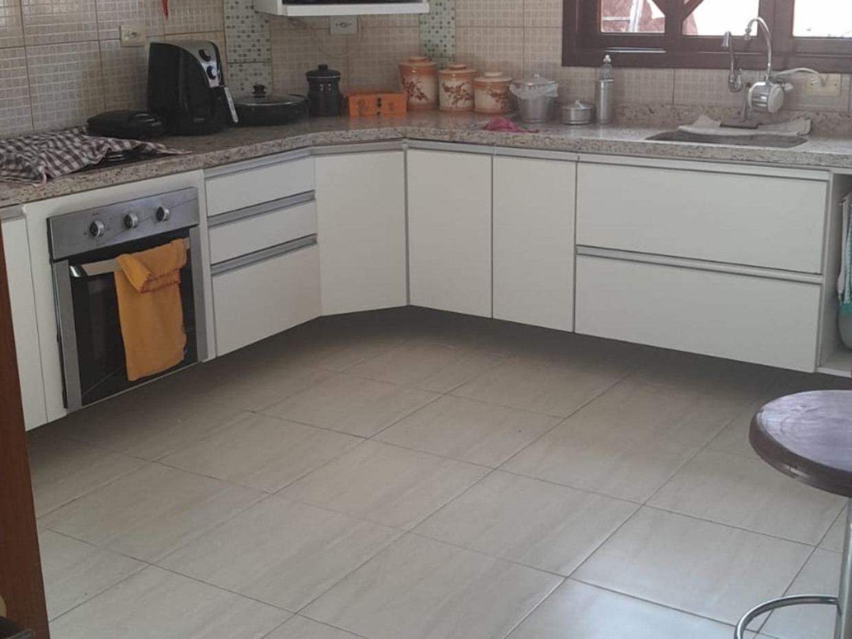 Sala, Três dormitórios (sendo uma suíte), 03 vagas de garagem e amplo rancho nos fundos.