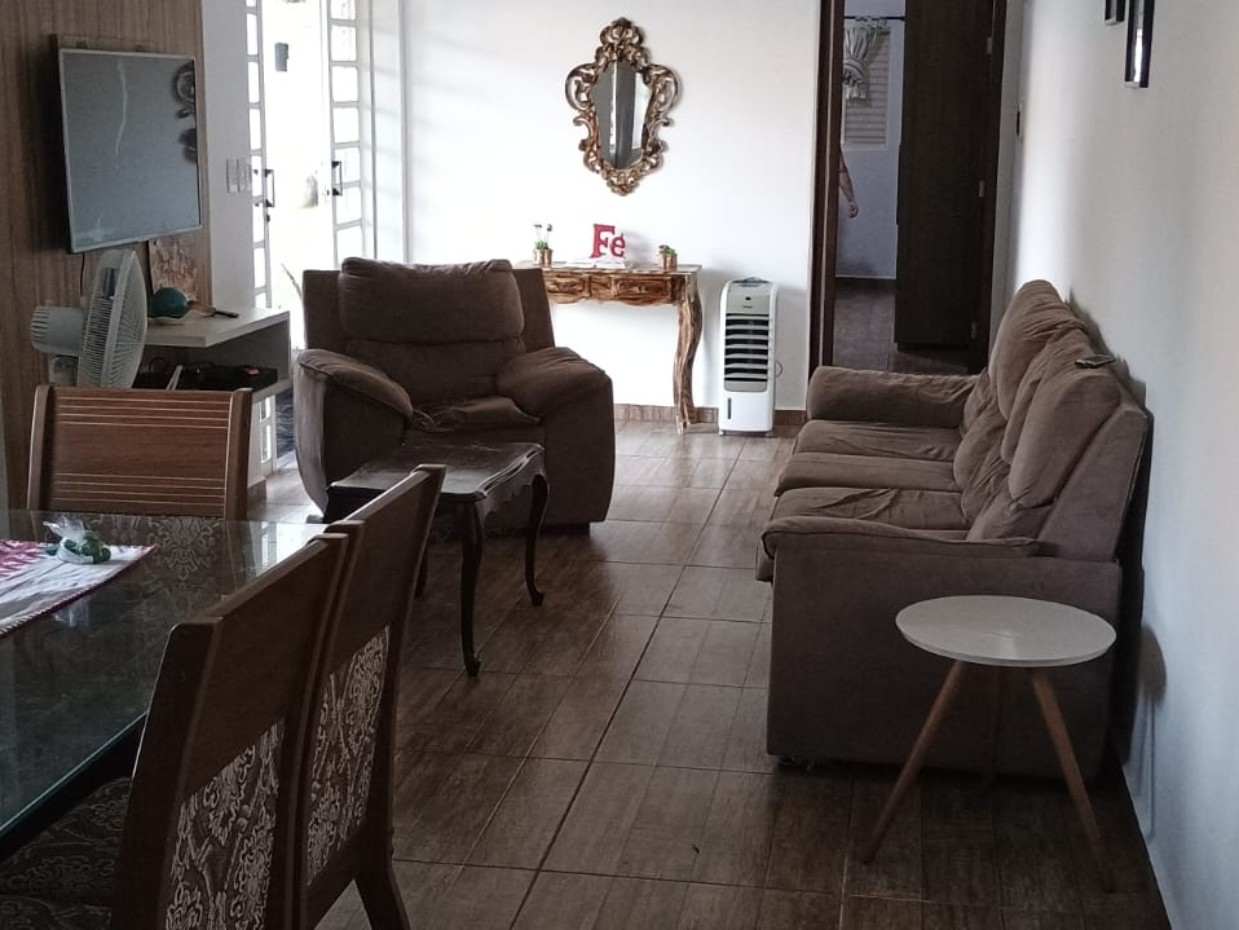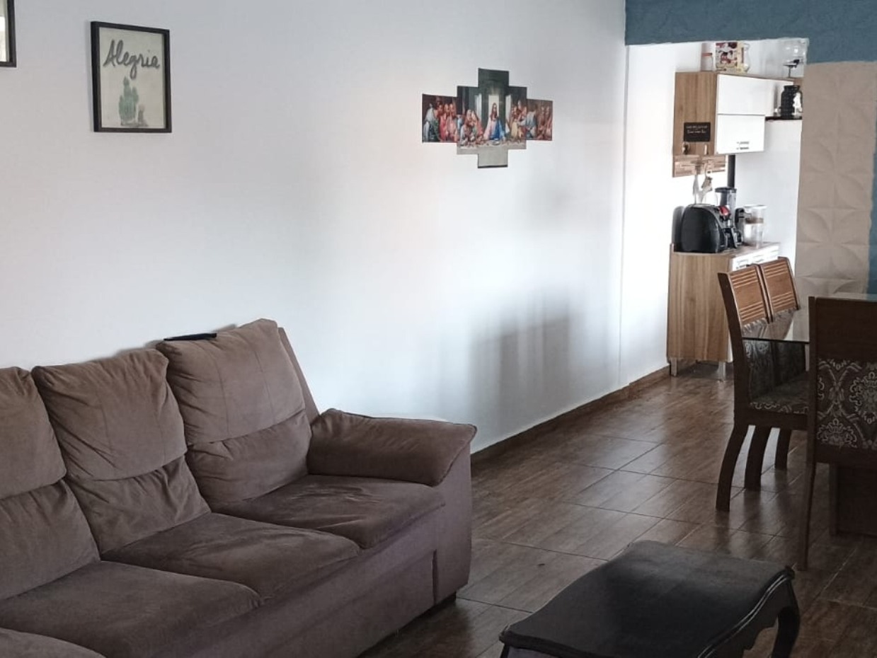 Sala em dois ambientes, cozinha independente, dois dormitórios (sendo uma suíte).