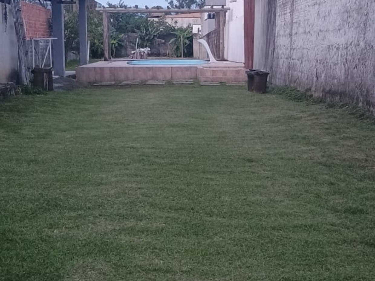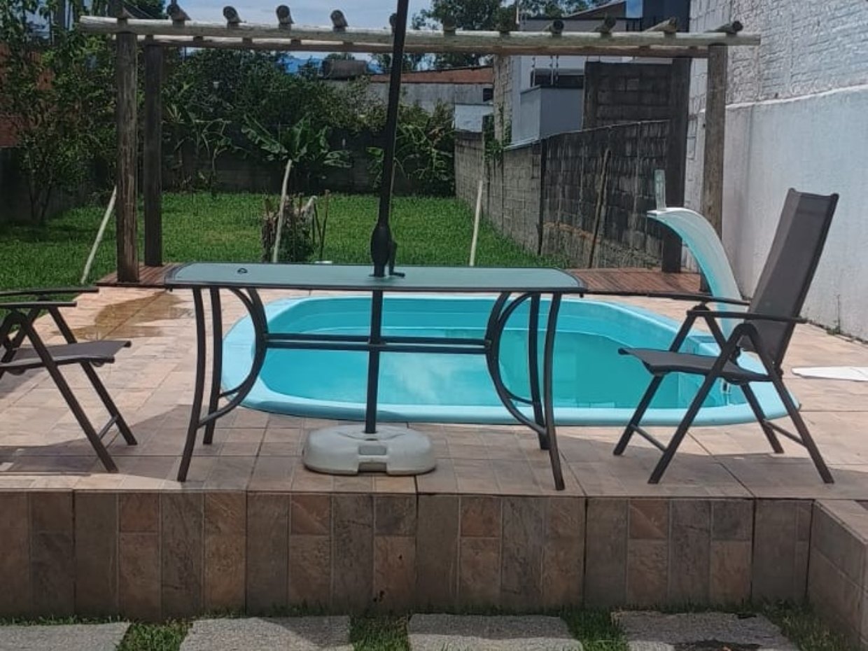 O espaço externo possui pomar em formação e área ampla que permite novas possibilidades de uso.