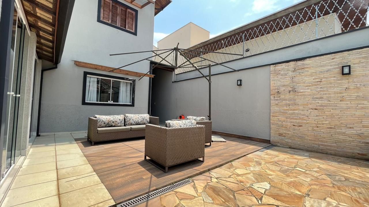 Casa com três dormitórios, sendo uma suíte, três banheiros, área de serviço, área gourmet com churrasqueira, piscina com cascata, duas espreguiçadeiras e jogo de sofá. Planejados nos dormitórios, sala, cozinha, lavanderia e banheiros. Equipada com cama king, cama de casal, duas camas box de solteiro com bicama, três TVs Smart (42” na suíte, 85” na sala e 40” na área gourmet), sofá retrátil extra grande, poltrona, mesa de jantar para oito lugares, duas geladeiras, fogão, micro-ondas e máquina lava e seca. Garagem coberta para dois carros. Imóvel funcional e completo, ideal para quem busca praticidade e conforto no dia a dia. Condomínio com portaria 24 horas, campo de futebol, quadra poliesportiva, pista de caminhada, playground, quiosques com churrasqueira, salão de festas, vagas para visitantes e ruas arborizadas.