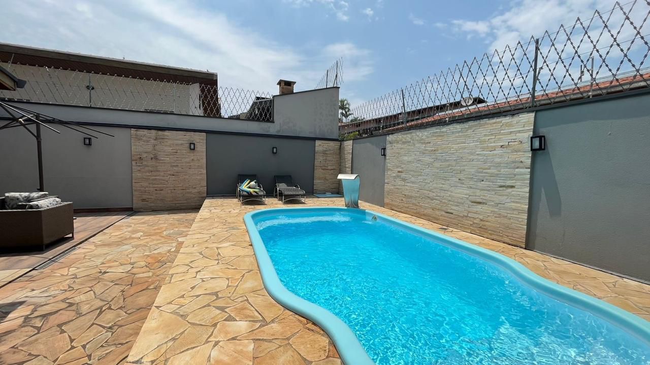 Casa com três dormitórios, sendo uma suíte, três banheiros, área de serviço, área gourmet com churrasqueira, piscina com cascata, duas espreguiçadeiras e jogo de sofá. Planejados nos dormitórios, sala, cozinha, lavanderia e banheiros. Equipada com cama king, cama de casal, duas camas box de solteiro com bicama, três TVs Smart (42” na suíte, 85” na sala e 40” na área gourmet), sofá retrátil extra grande, poltrona, mesa de jantar para oito lugares, duas geladeiras, fogão, micro-ondas e máquina lava e seca. Garagem coberta para dois carros. Imóvel funcional e completo, ideal para quem busca praticidade e conforto no dia a dia. Condomínio com portaria 24 horas, campo de futebol, quadra poliesportiva, pista de caminhada, playground, quiosques com churrasqueira, salão de festas, vagas para visitantes e ruas arborizadas.