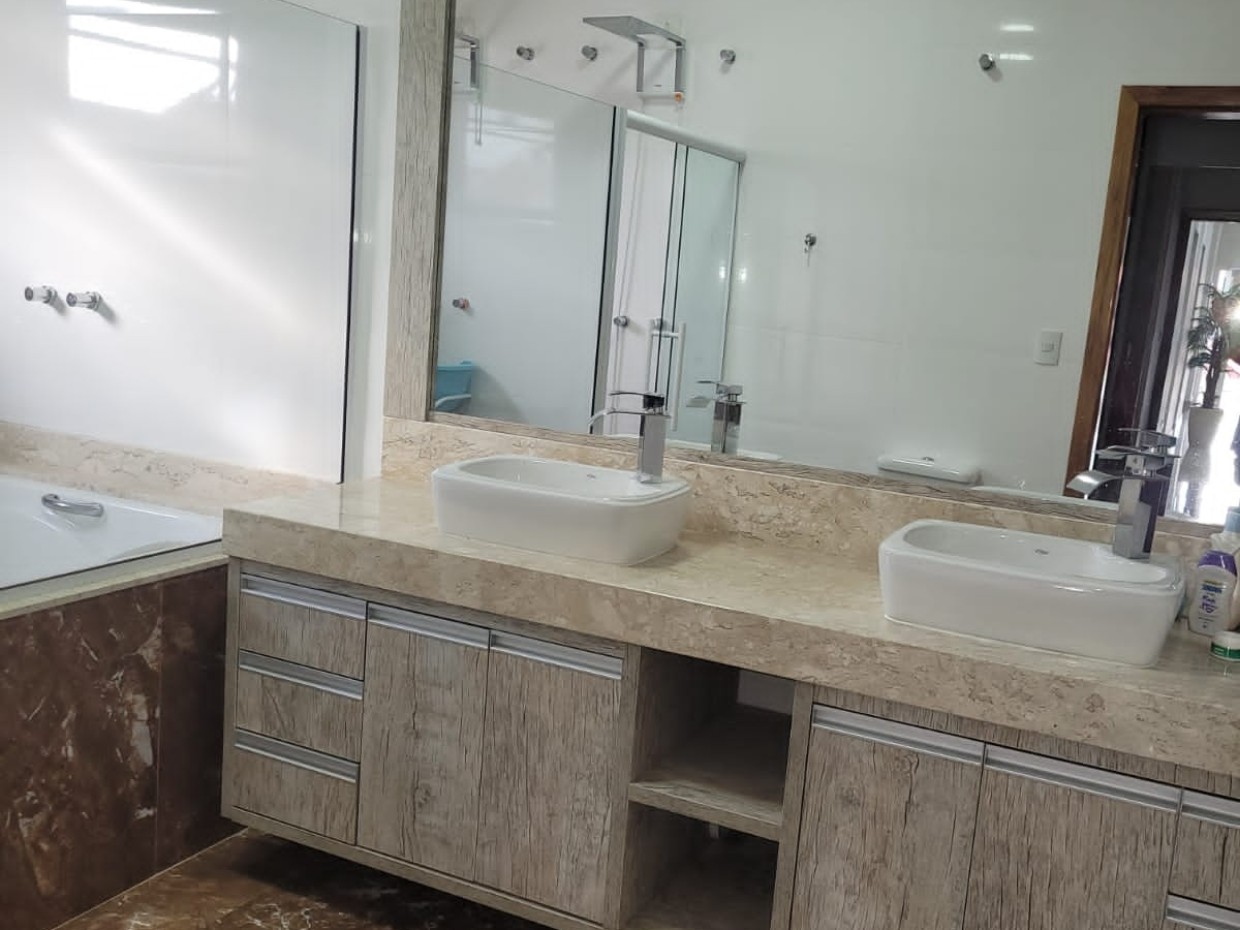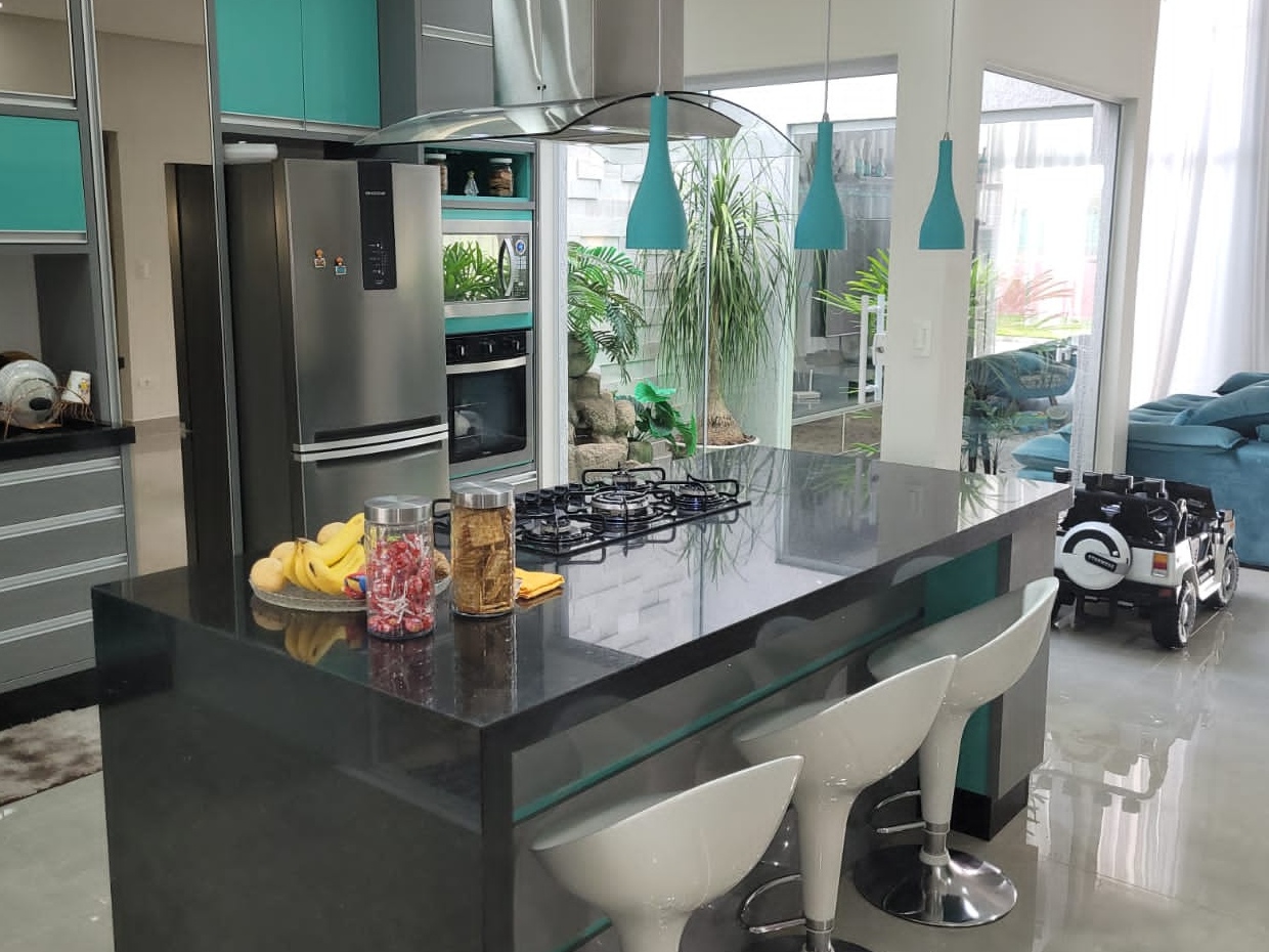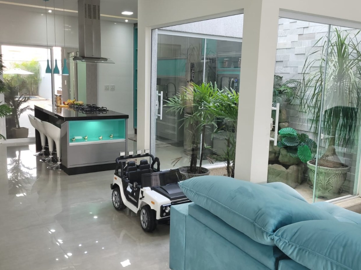 Com terreno de 300 m² e 220 m² de área construída, o sobrado conta com três suítes, sendo a master com banheira dupla, hidromassagem e box com dois chuveiros, além de sala de estar e jantar integradas, jardim de inverno, área gourmet com churrasqueira e piscina com cascata e hidromassagem. Dispõe ainda de iluminação em LED, ar condicionado, móveis planejados em todos os cômodos, aquecedor solar e duas vagas cobertas. O Condomínio Residencial Tecoara oferece completa infraestrutura de lazer e segurança, com portaria 24 horas, piscinas adulto e infantil, sauna, quadra poliesportiva, quadra de tênis, quiosques, salão de festas, playground, espaço pet e academia.