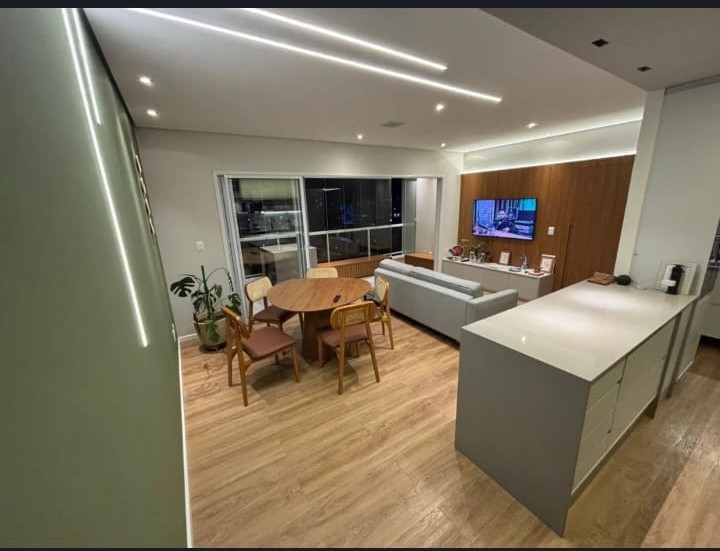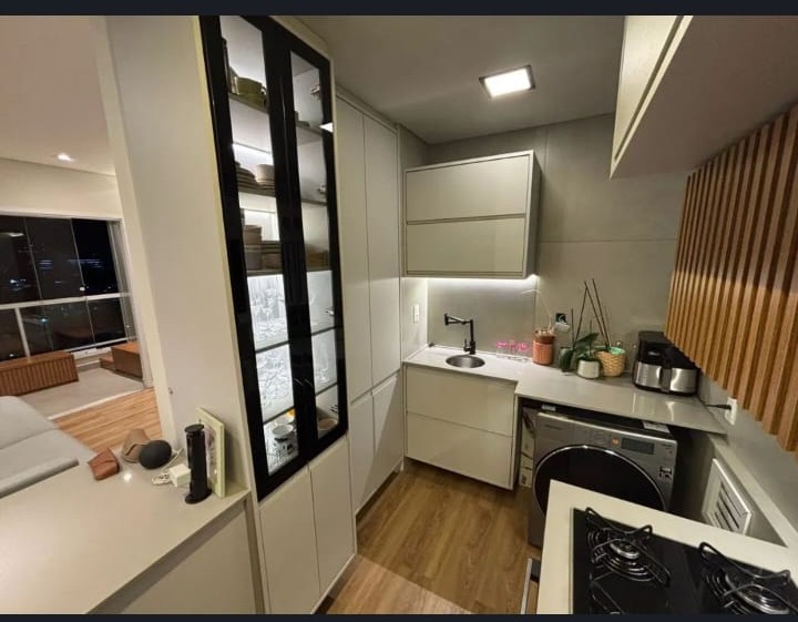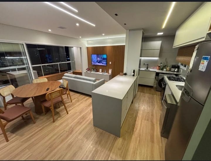 Apartamento no 11º andar, com 77 m² e excelente incidência de sol da manhã. Possui marcenaria planejada em todos os ambientes (sala, cozinha, dormitórios, banheiros e área gourmet) executada com altíssimo padrão, garantindo durabilidade e sofisticação. As bancadas em quartzo, presentes inclusive na lavanderia e banheiros, unem elegância e resistência.