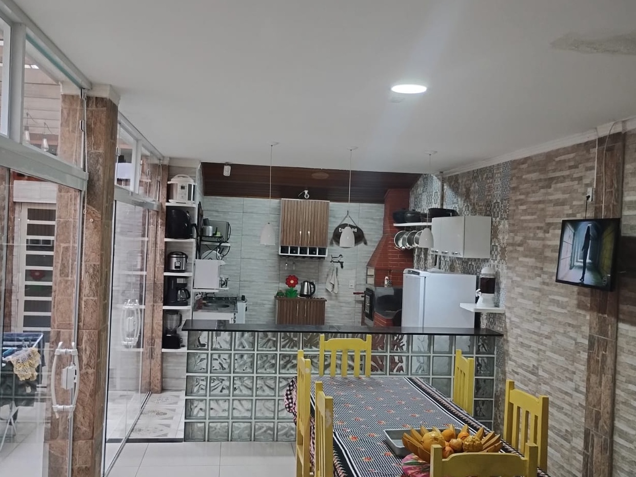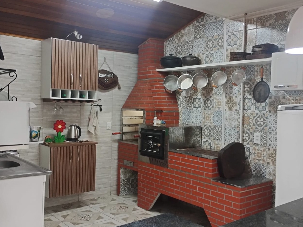 No piso inferior, dormitório adicional, banheiro e agradável espaço gourmet com fogão a lenha, perfeito para receber amigos e aproveitar bons momentos em família.
